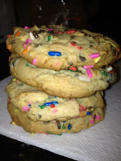 Happy Wednesday! Today for What's Cooking Wednesday, I decided to make Funfetti Cake Batter Cookies. I was inspired by Cookin' Cowgirl at this post. I followed her exact recipe, but mine didn't look like hers... REGARDLESS, they were amazing and delicious and perfect with milk!